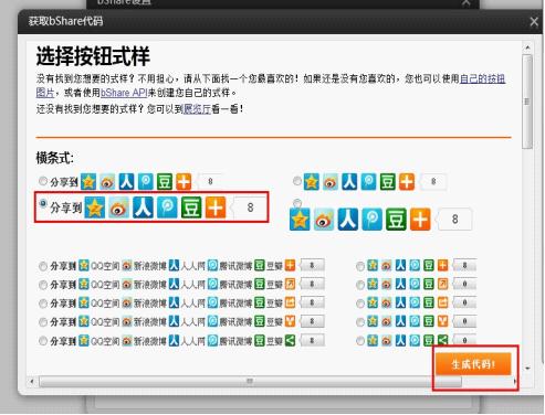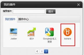 1、点击拖拽“bshare”插件,(没有请在“插件中心”启用)